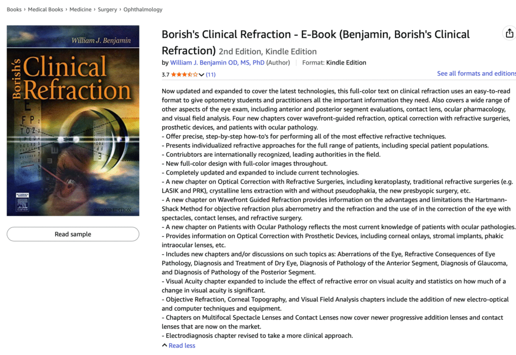 Borish’s Clinical Refraction is not just another textbook—it is the culmination of decades of knowledge and dedication. This Second Edition is considered the seventh iteration of a text lineage that began over 68 years ago.